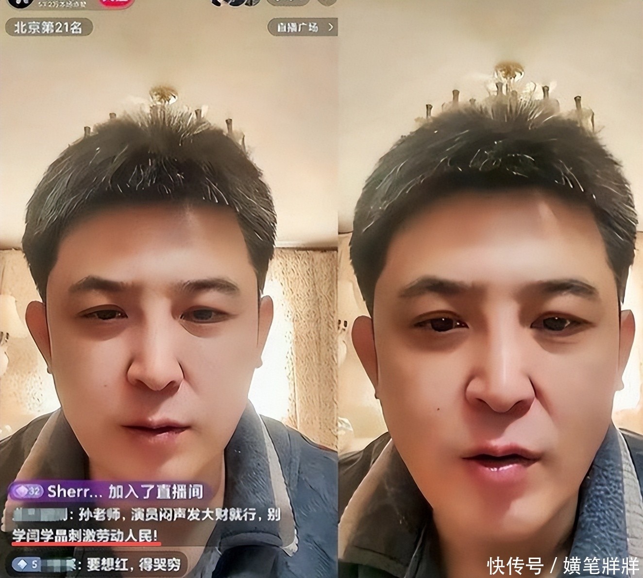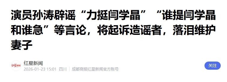 未曾想,沉默反而助长谣言气焰——有营销号添油加醋渲染:“孙涛当场拍桌怒斥黑粉”“扬言谁骂闫学晶就封谁账号”,情节编造之离谱令人瞠目。