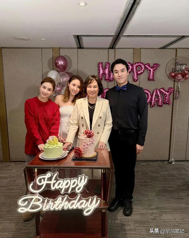更难得的是,陈婉珍的娘家人也罕见出镜,她的妹妹陈婉玉现身宴席,一众亲友相聚,订了两个蛋糕的生日宴,比往年热闹了不少。