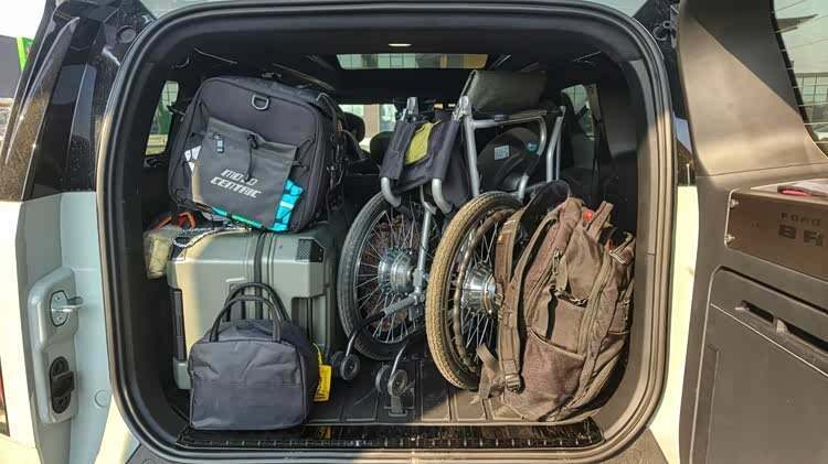后备箱常规容积是497L,放三四个登机箱再加一些背包轻轻松松。把后排座椅放倒后,空间能拓展不少,虽然不完全纯平,但铺个垫子午休或者临时放个大件家电也够用。最有意思的是车头还有个160L的前备箱,带排水设计的。这简直是个宝藏空间,以后去海边玩,湿漉漉的泳衣、沾满泥巴的鞋子,直接扔前备箱,完全不用担心弄脏车内。车内各种大大小小的储物格也很多,零钱、手机、水杯都能找到合适的地方放。