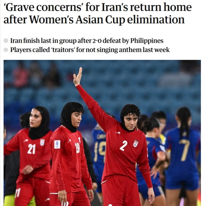 03月08日讯 据英媒《卫报》报道,伊朗女足在小组赛最后一场不敌菲律宾,虽然在本届亚洲杯旅程已经结束,但她们能否顺利回国仍是未知数。