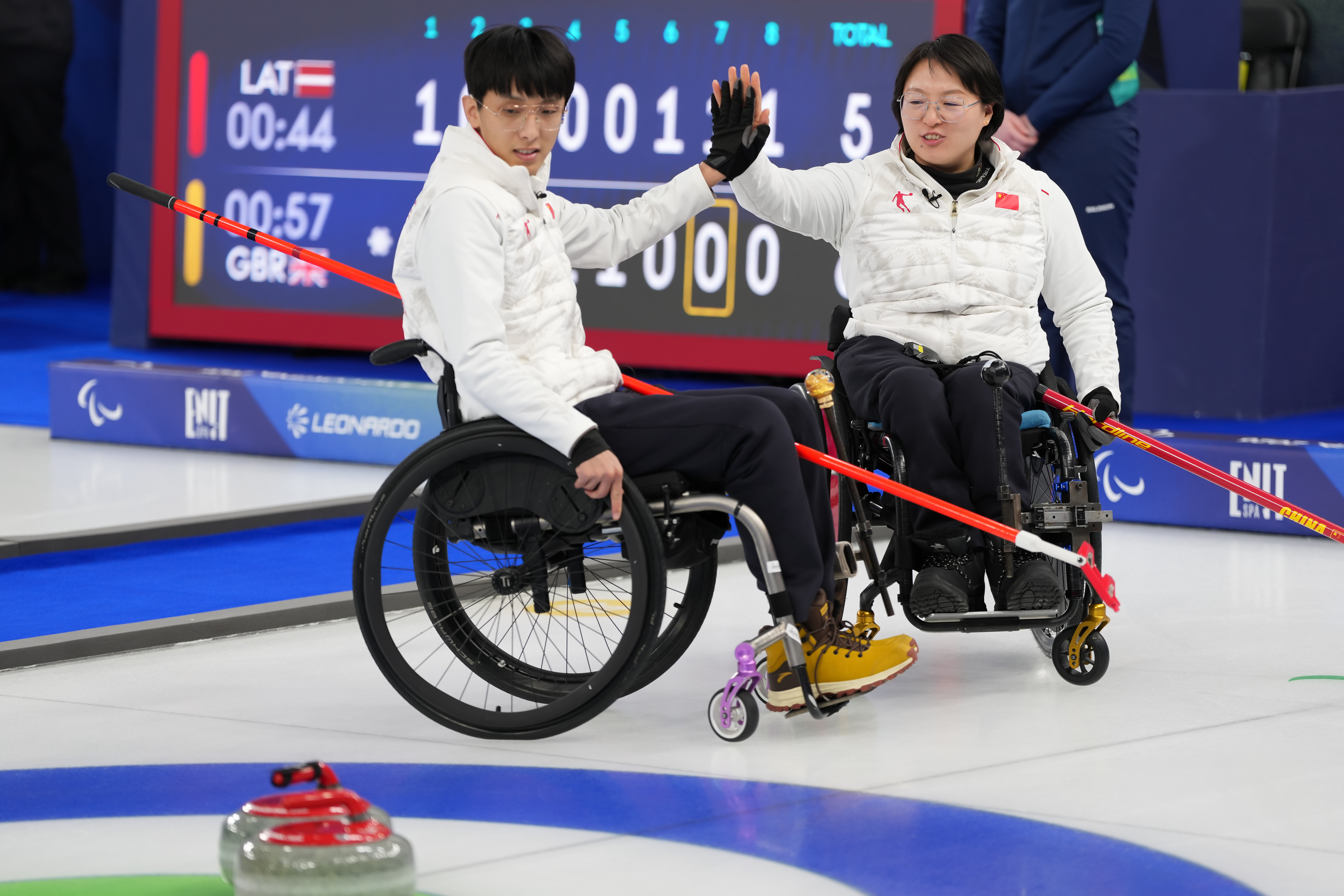 当地时间3月5日,在意大利科尔蒂纳举行的米兰-科尔蒂纳冬残奥会轮椅冰壶混双循环赛中,中国队8比7战胜意大利队。